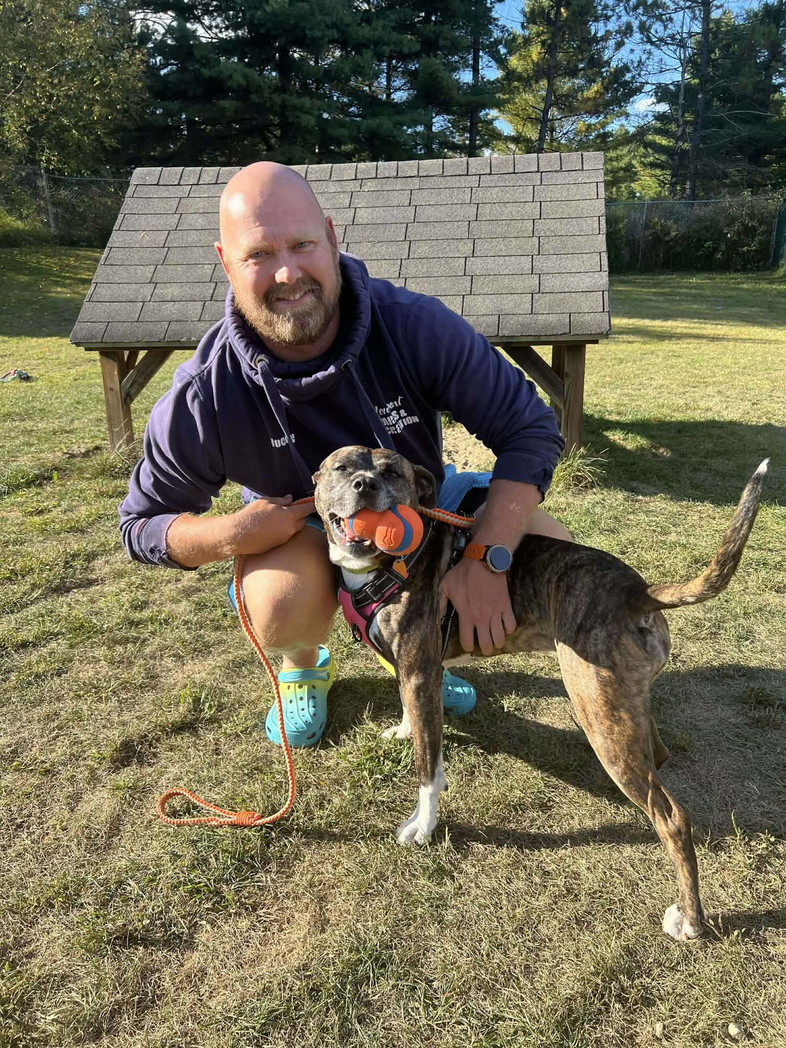 Now approaching his third full year at the shelter, Nate has become a key part of the canine care team. His calm presence, dedication, and compassion help ensure every dog is safe, loved, and well cared for during their stay. He’s proud to work alongside a knowledgeable and committed crew, all focused on finding the best possible homes for each pup.